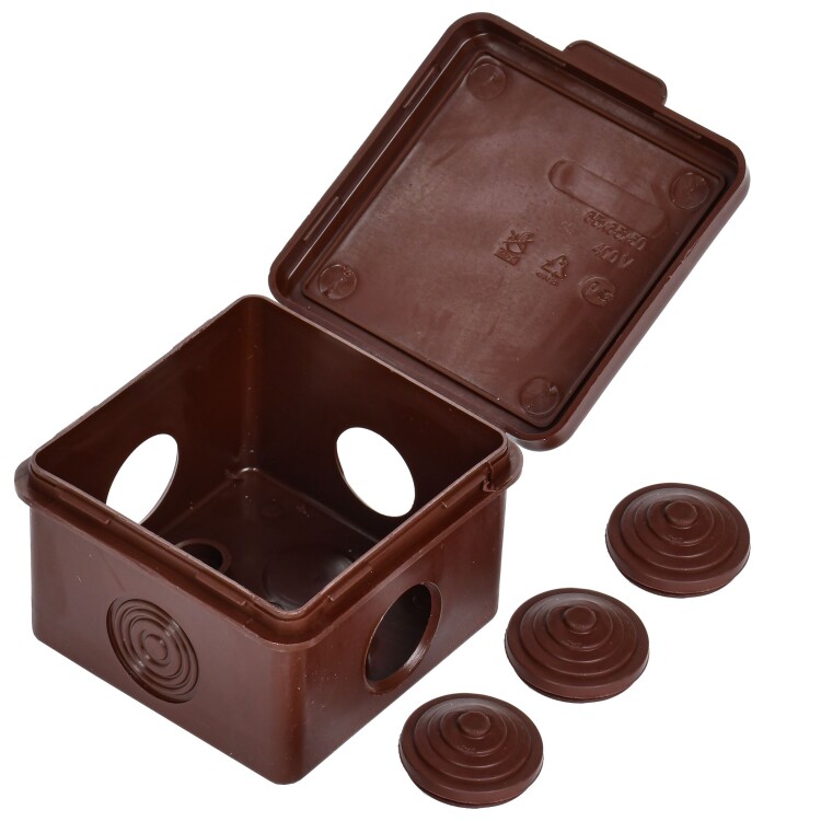 Коробка расп. КМ 65х65х50мм о/к IP54 4 вв. дуб IEK