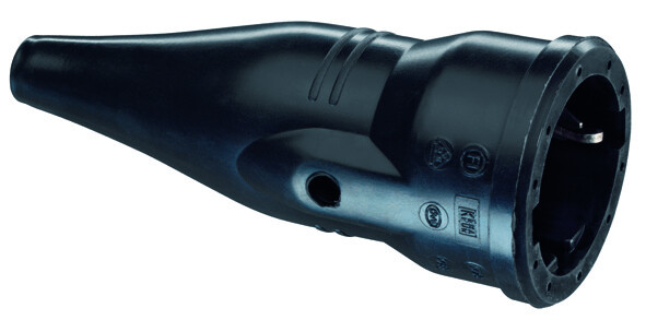 Розетка кабельная, 16А, с/з, IP44, резина, чёрная