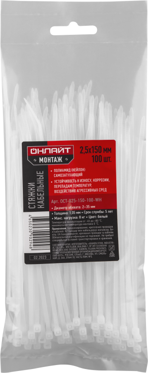 Хомуты ОНЛАЙТ 90 294 OCT-025-150-100-WH (100 шт/упак)