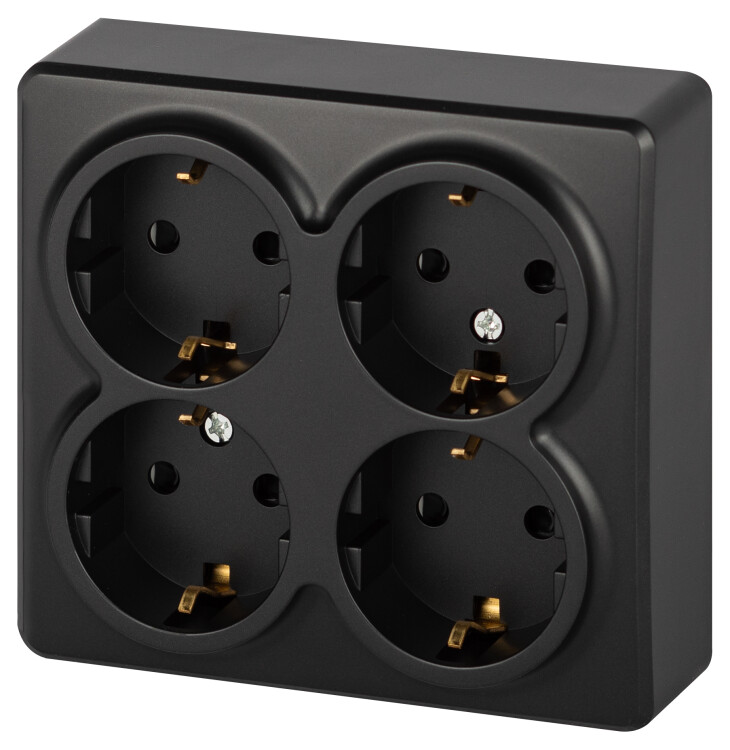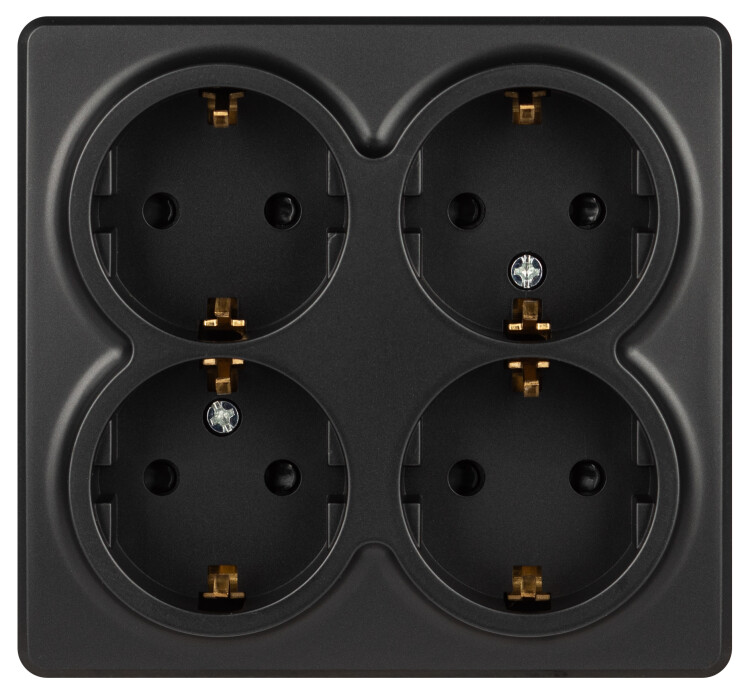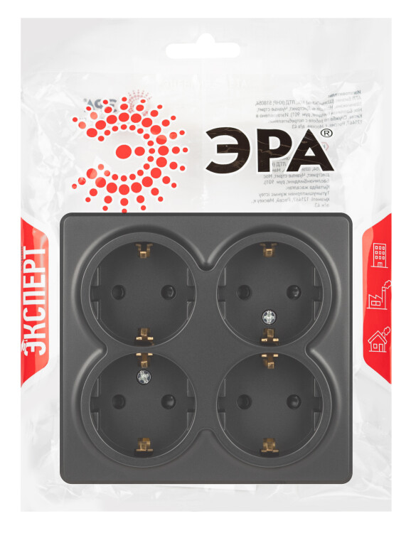 Розетка ЭРА Эксперт 11-2211-05 четырехместная с заземлением 4х2P+E Schuko со шторками, IP20, 16A-250В, ОУ, антрацит