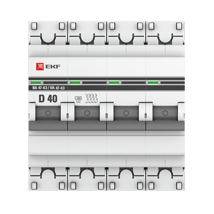 Автомат. выкл. 4-пол. 40А тип D 4,5кА серия ВА 47-63 EKF PROxima