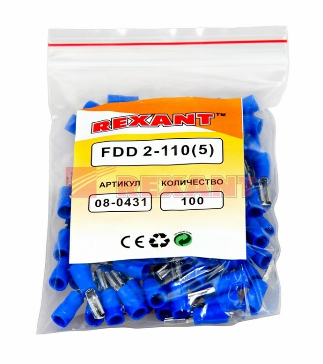 Клемма плоская изолированная РПи-м 2.5-(2.8)/РпИм 2-250 гнездо 3.8 мм 1.5-2.5 мм² REXANT