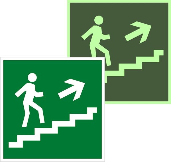 Знак наклейка E15 "Направление к эвакуационному выходу по лестнице вверх" (200x200) фотолюминесцентный ГОСТ 12.4.026-2015 EKF PROxima
