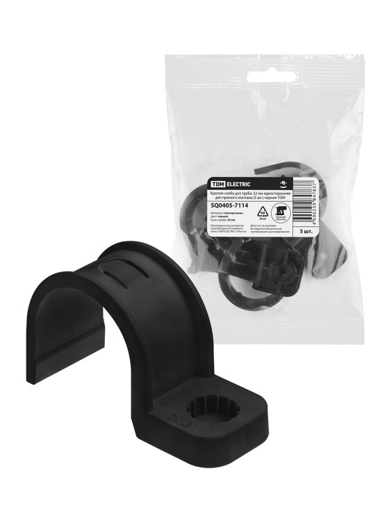Крепеж-скоба для трубы 32 мм односторонняя для прямого монтажа (5 шт.) черная TDM