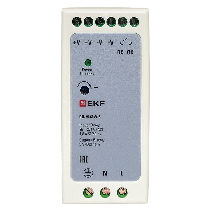 Блок питания на дин рейку 60Вт,Uвх ~ 260 В AC m, Uвых - 5 В DC постоянного тока
