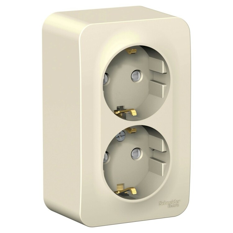 Розетка 2х2P+E со шторками 16А 250В накладной монтаж молочный BLANCA