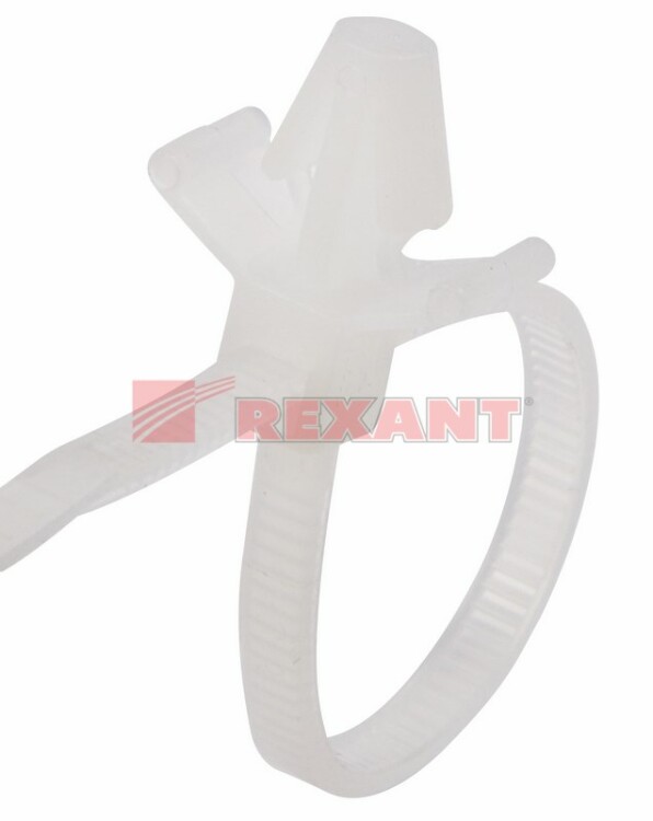 Стяжка нейлоновая с крепежным пистоном 100x2,5мм, ø 2,4мм, белая (100 шт/уп) REXANT