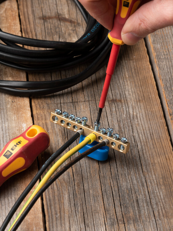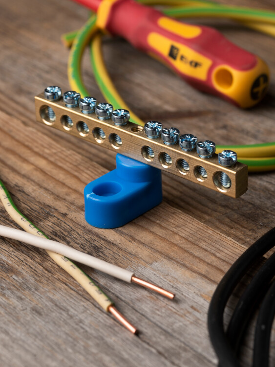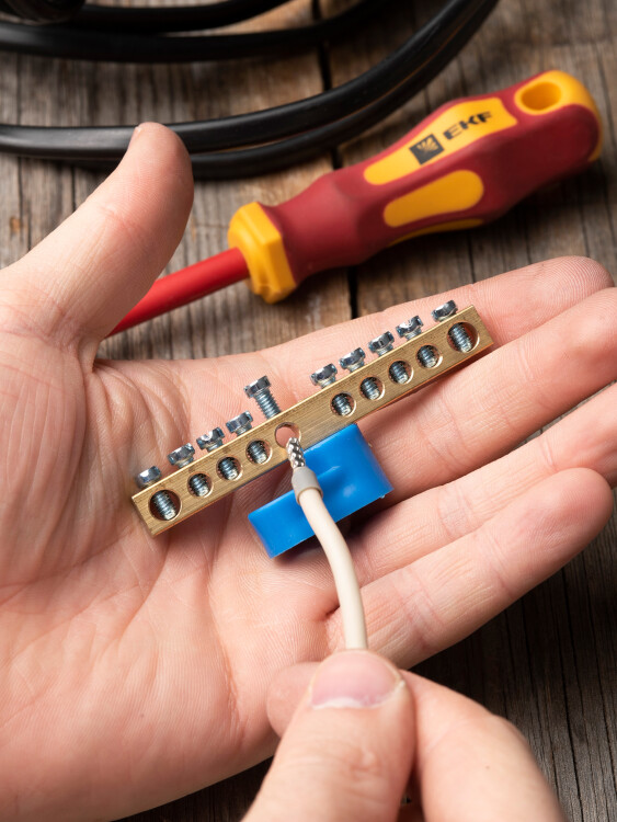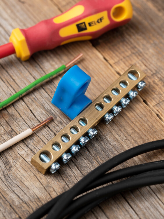 Шина "0" N (6х9мм) 10 отверстий латунь синий угловой изолятор EKF PROxima