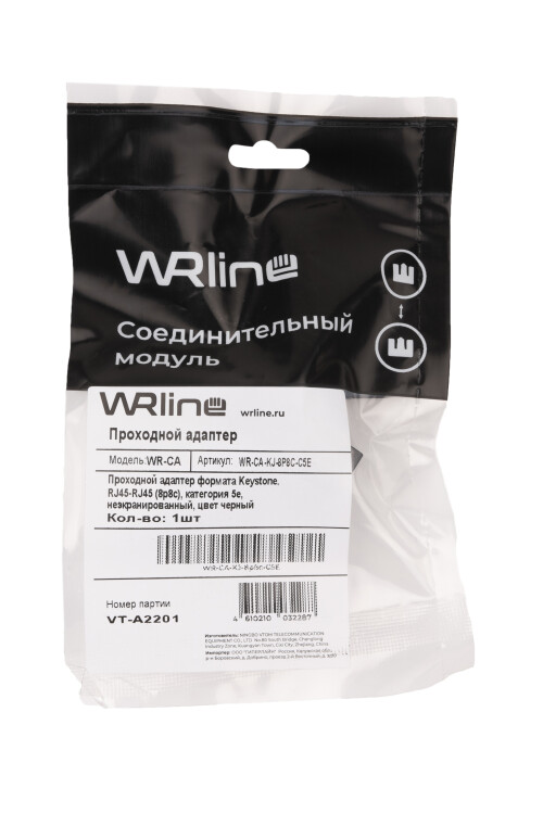 WRline WR-CA-KJ-8p8c-C5E Проходной адаптер формата Keystone, RJ45-RJ45 (8p8c), категория 5е, неэкранированный, цвет черный