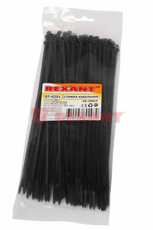 Хомут кабельный нейлон 3,6х250 мм черный (упак. 100шт)