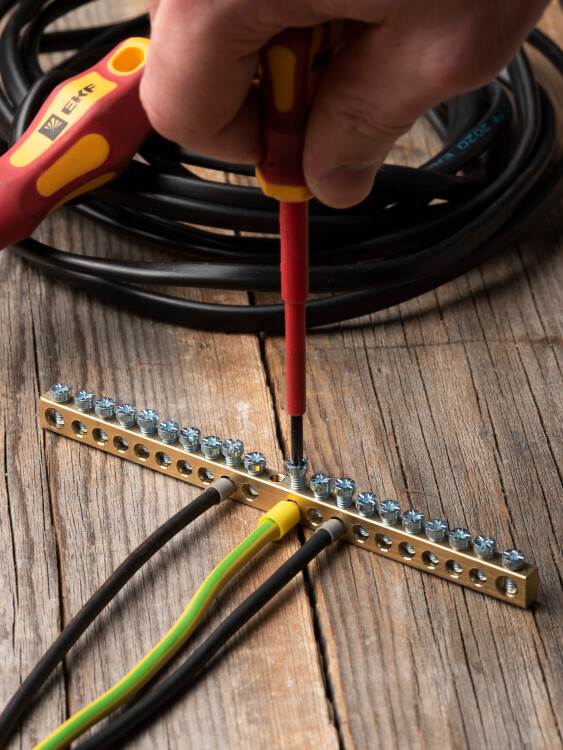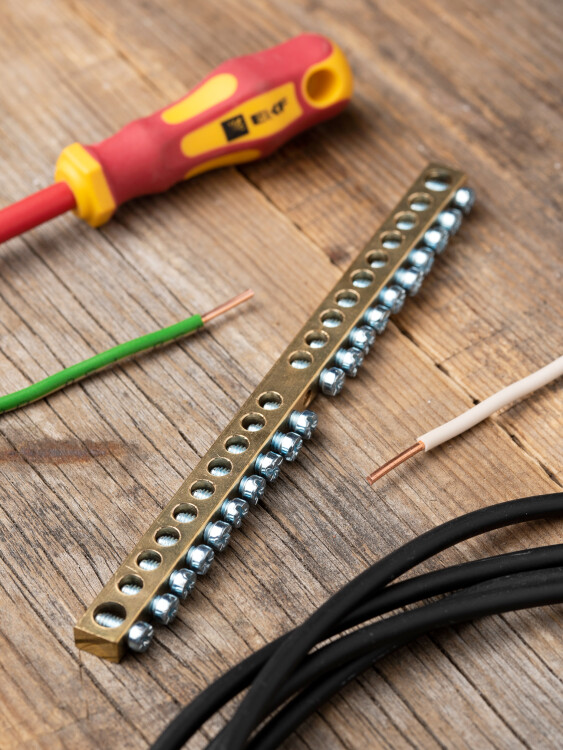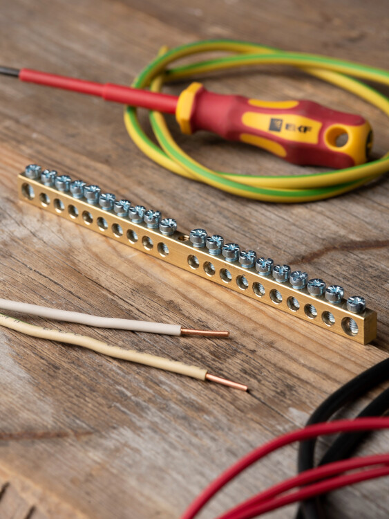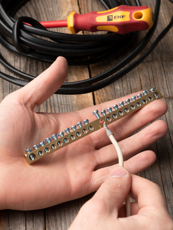 Шина PEN "ноль-земля" (6х9мм) 20 отверстий латунь крепеж по центру EKF PROxima