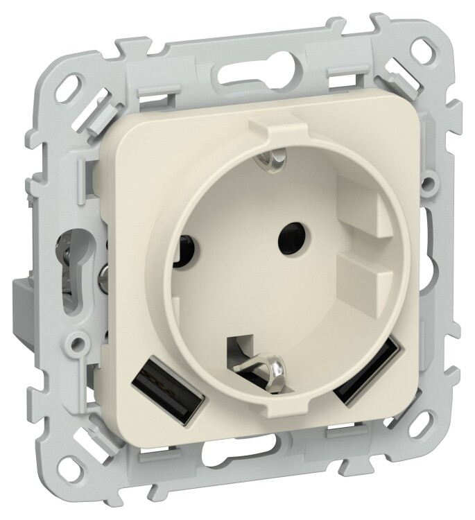 Розетка 2P+E с 2хUSB 3,1А РСЮша11-0-ФлСл сливочный FLITE