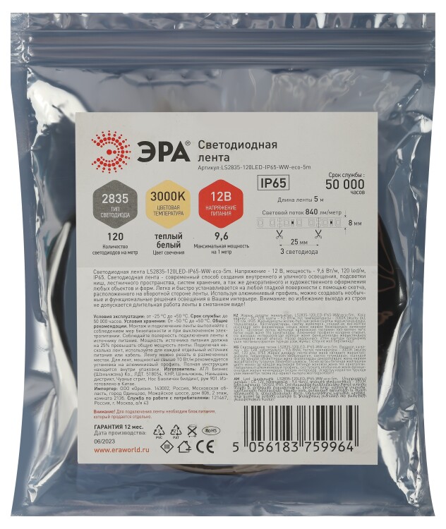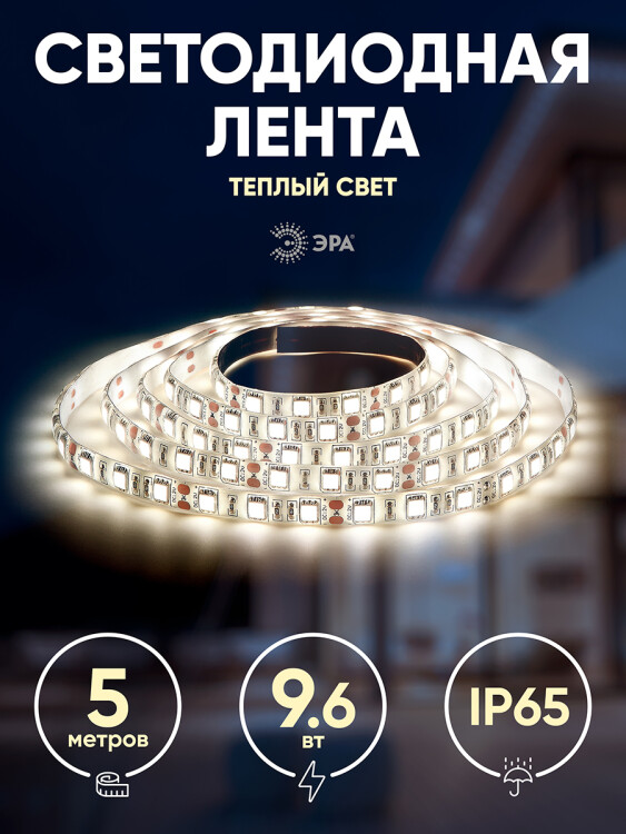 Светодиодная лента ЭРА LS2835 120LED-IP65-WW-eco-5m (80/1920)