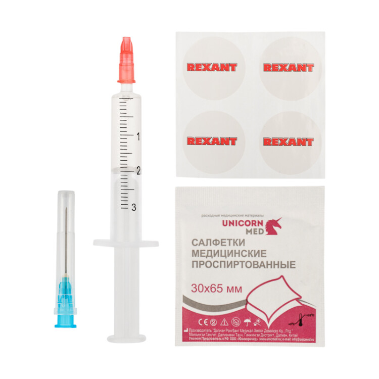 Смазка для кулеров (вентиляторов) SX-1, 2мл, (шприц, салфетки, наклейки), блистер REXANT