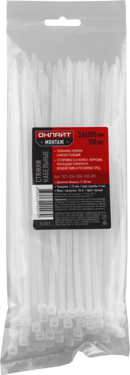Хомуты ОНЛАЙТ 90 297 OCT-036-200-100-WH (100 шт/упак)