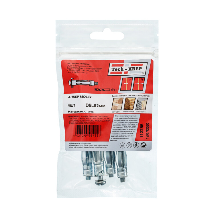 Анкер (дюбель) Молли М5х52 (4 шт) - пакет