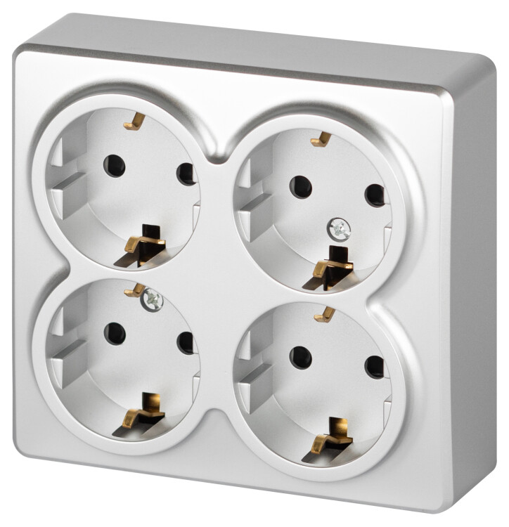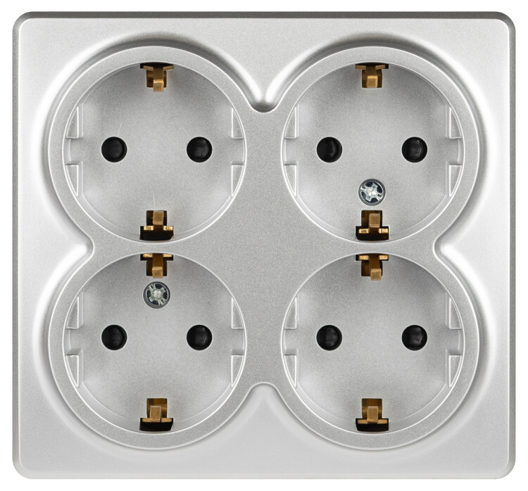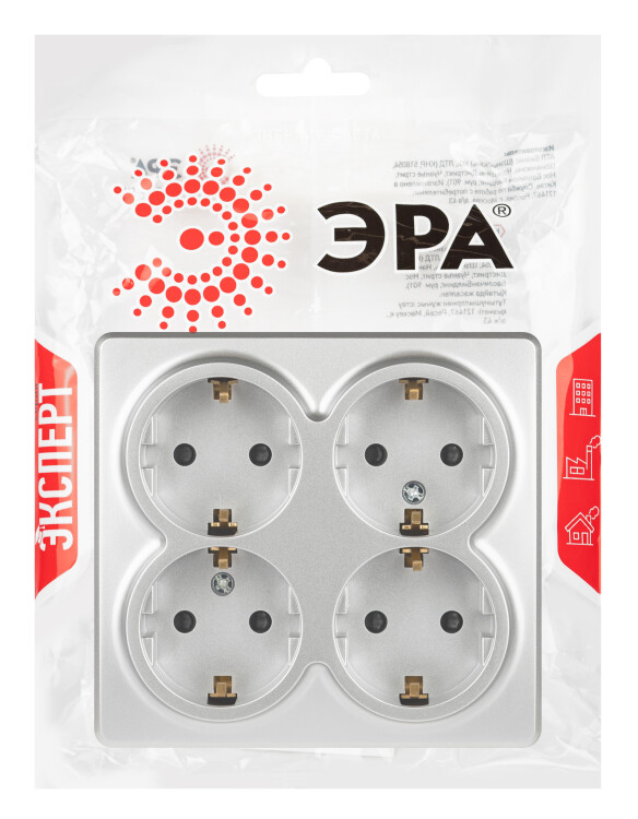 Розетка ЭРА Эксперт 11-2211-03 четырехместная с заземлением 4х2P+E Schuko со шторками, IP20, 16A-250В, ОУ, алюминий