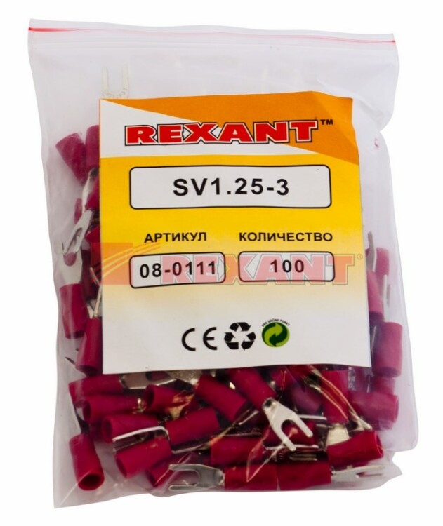 Наконечник вилочный изолированный 3.2 мм 0.5-1.5 мм² (НВи 1.5-3/НВи 1,25-3) красный REXANT