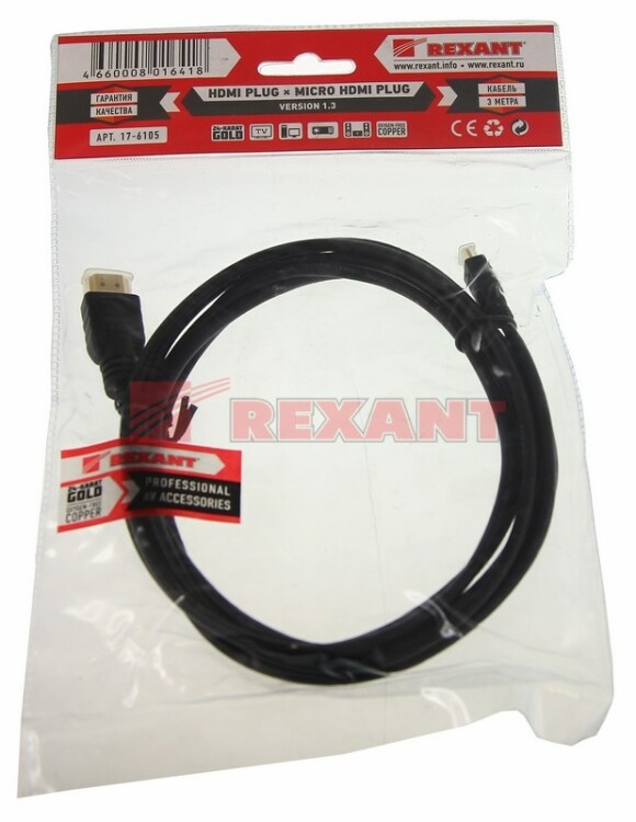 Кабель HDMI - HDMI 2.0, 3м, Gold REXANT