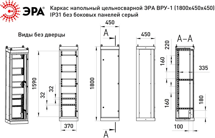 Каркас напольный цельносварной ЭРА ВРУ-1 (1800х450х450) IP31 без боковых панелей серый
