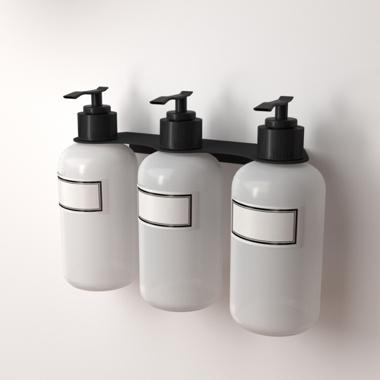 Держатель дозатора для жидкого мыла и шампуней на 3 флакона настенный, черный REXANT