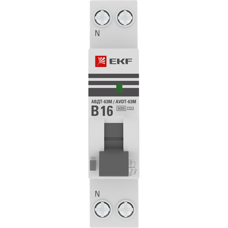 Диф. автомат 16А 30мА 1мод. х-ка B эл. тип A 6кА АВДТ-63М EKF PROxima