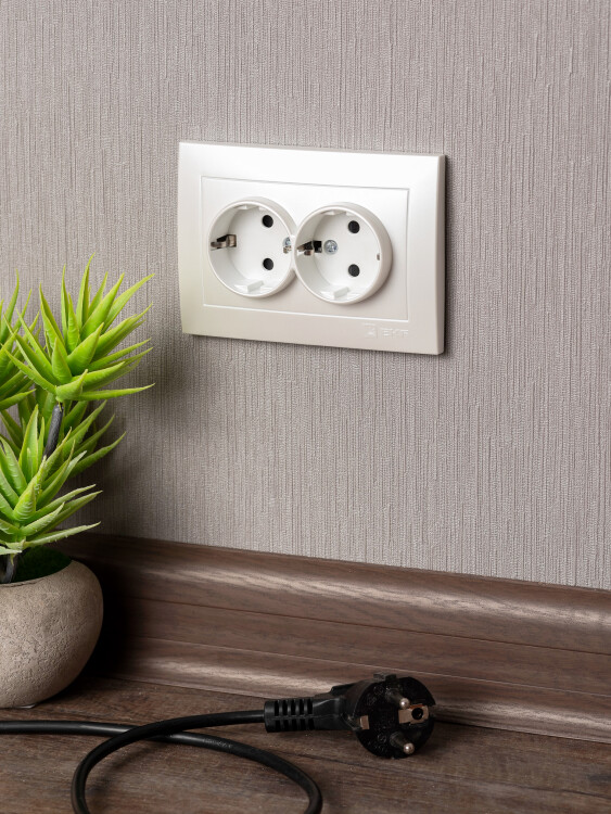 Валенсия лицевая панель розетки 2-местной с/з 16А жемчуг с защ. штор. EKF PROxima