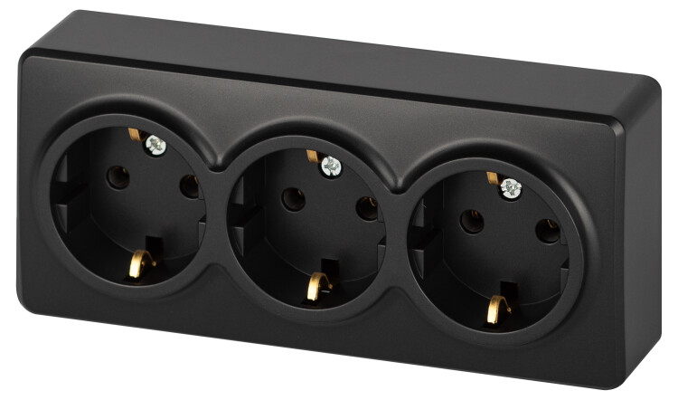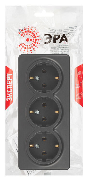 Розетка ЭРА Эксперт 11-2208-05 тройная с заземлением 3х2P+E Schuko, IP20, 16A-250В, ОУ, антрацит