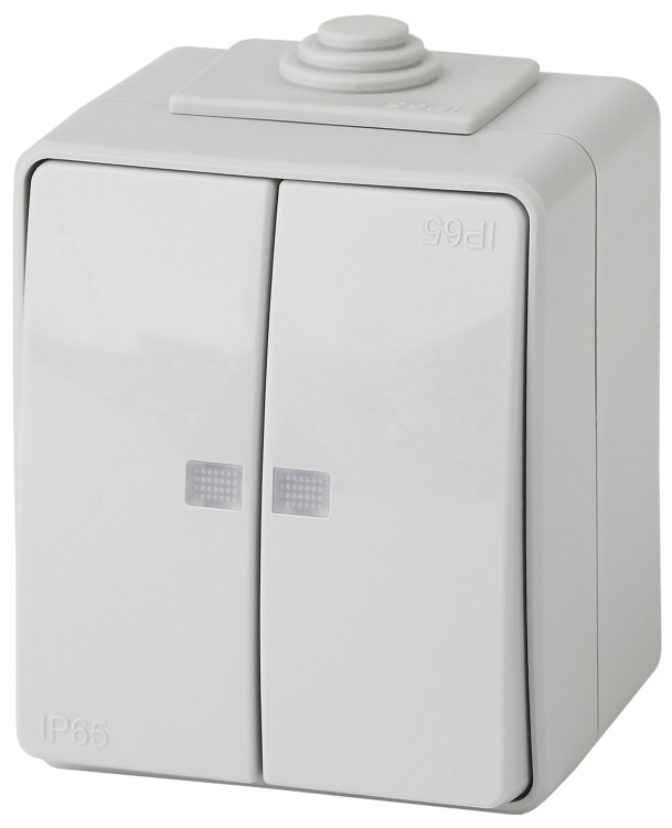 11-1605-03 ЭРА Выключатель двойной с подсветкой IP65, 10АХ-250В, ОУ, Эра Эксперт, серый (10/100/1600