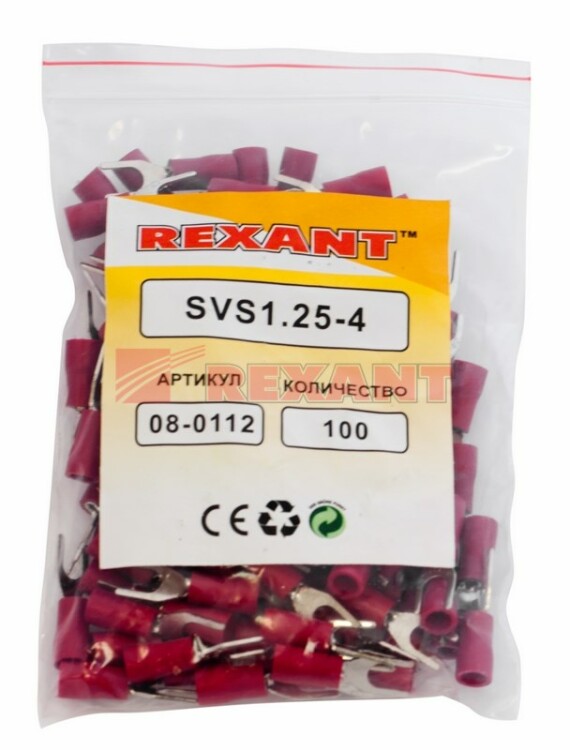 Наконечник вилочный изолированный 4.3 мм 0.5-1.5 мм² (НВи 1.5-4/НВи 1,25-4) красный REXANT