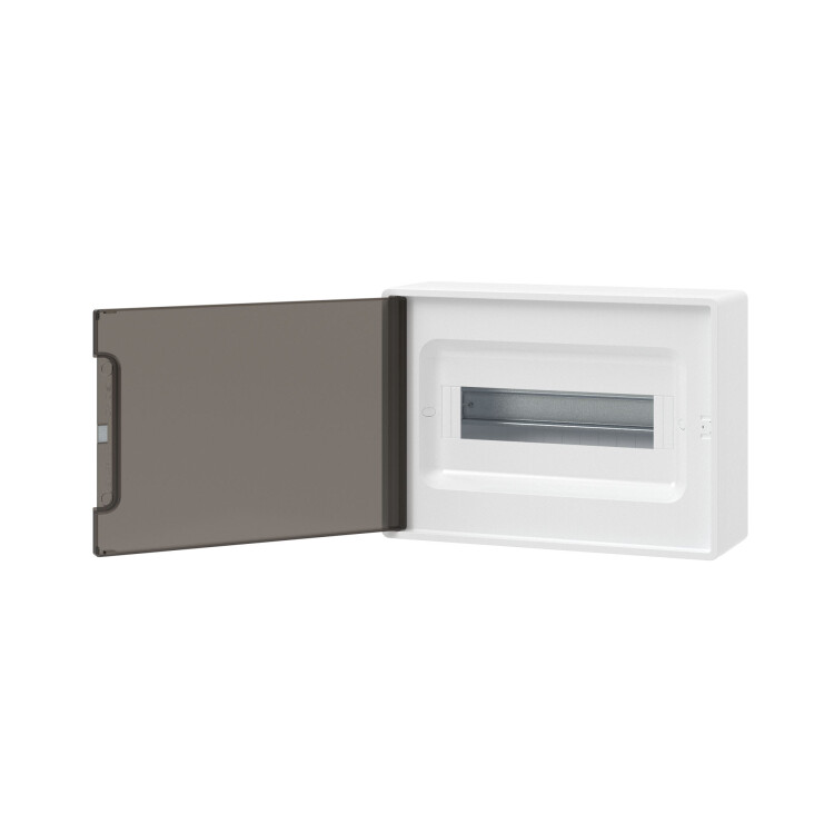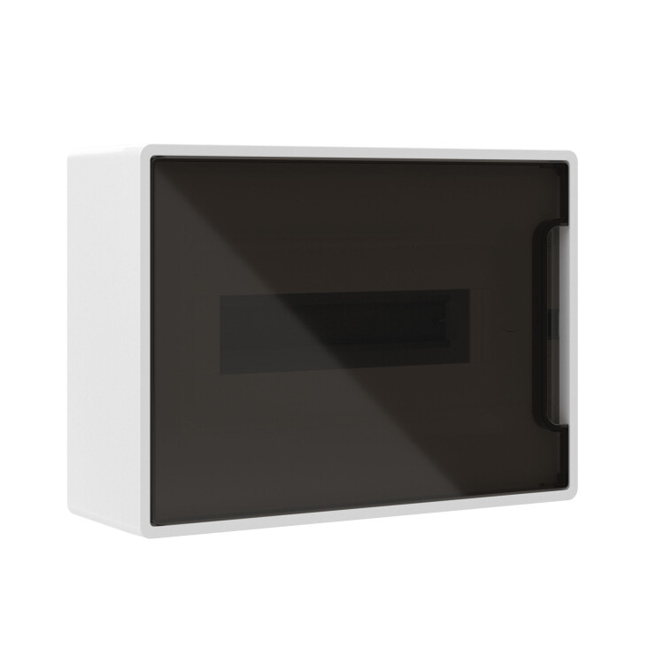 Щит настенного монтажа 12мод. белый с тонированной дверцей, IP40, 2 шины PEN на 8 и 6отв. FRAME