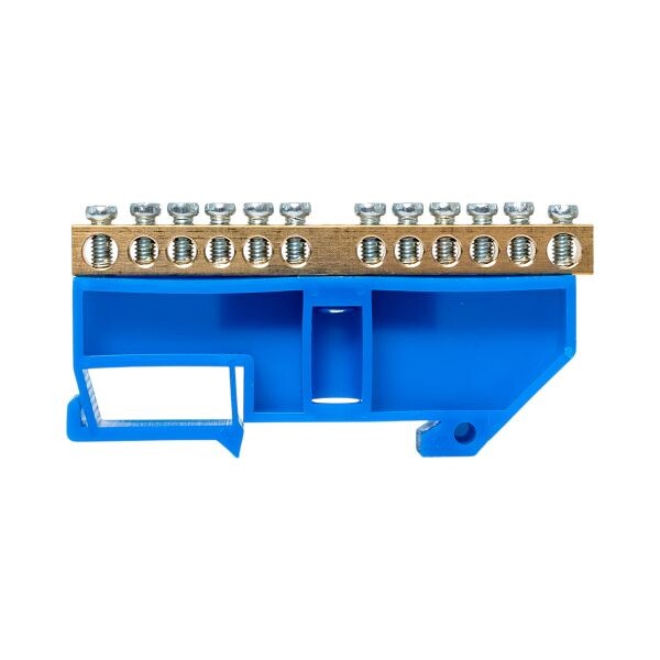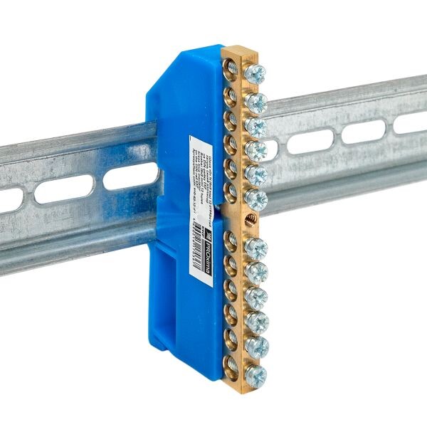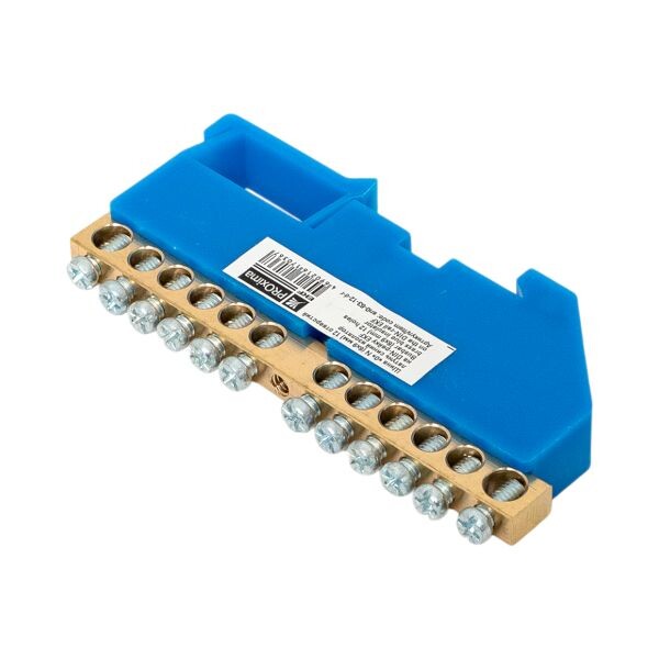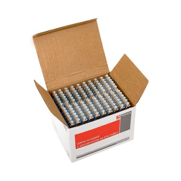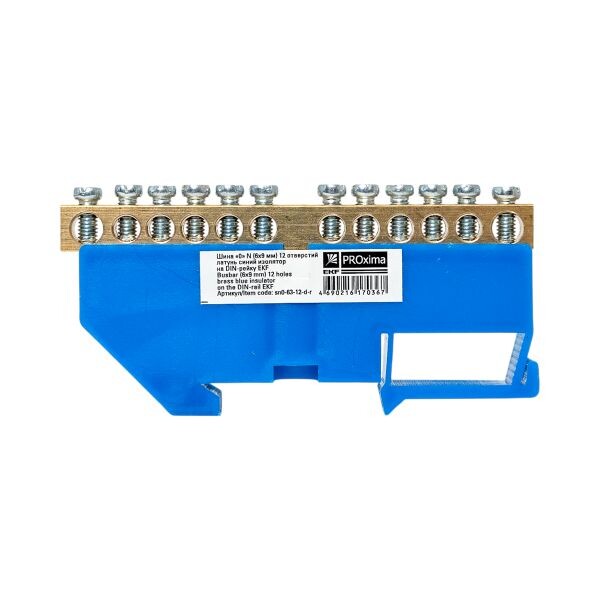 Шина "0" N (6х9мм) 12 отверстий латунь синий изолятор на DIN-рейку розничный стикер EKF PROxima
