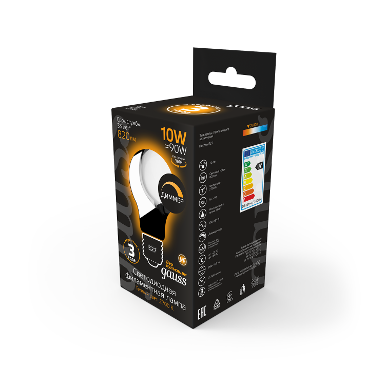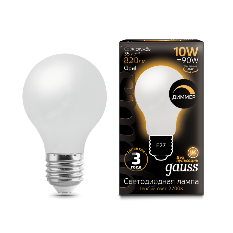 Лампа светодиодная 10 Вт 230В Е27 Filament OPAL А60 диммируемая, тёплый 2700К