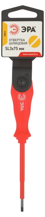 Отвертка ЭРА SL3х75 мм шлицевая диэлектрическая до 1000 В двухкомпонентная рукоятка
