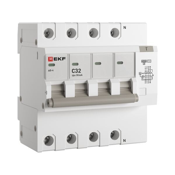 Дифференциальный автомат АД-4 32А/ 30мА (хар. C, AC, электронный) 6кА EKF PROxima