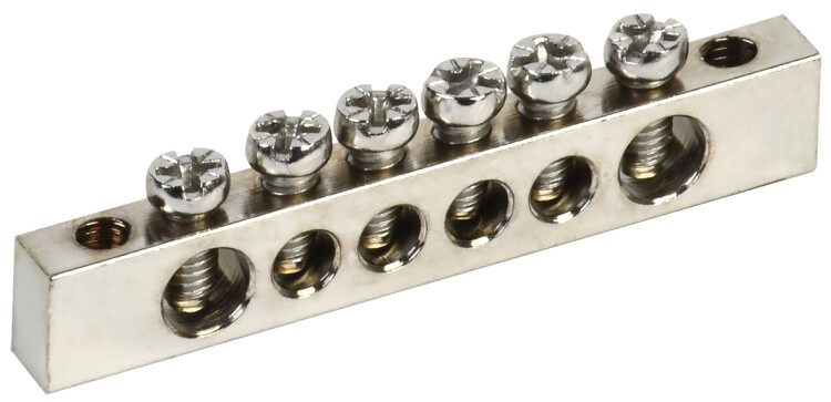 Шина PEN "земля-ноль" 6х9мм 6/2 с никелевым покрытием (6групп/крепеж по краям) IEK