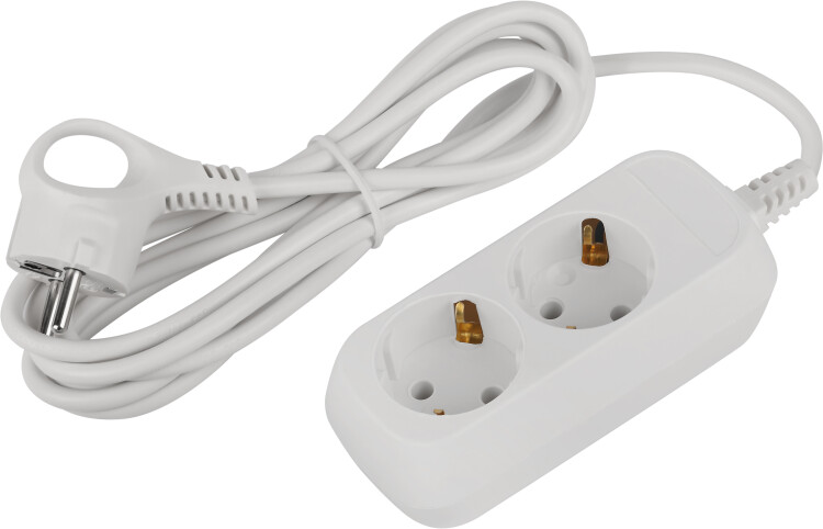 Удлинитель, 2 розетки, длина 3 м, 10А, ПВС 3х0,75 мм², c/з, IP20, термопласт, белый, У02