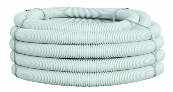 Труба ПВХ гибкая гофрированная д.63 мм, лёгкая, с протяжкой, цвет серый, (Бухта 15м)