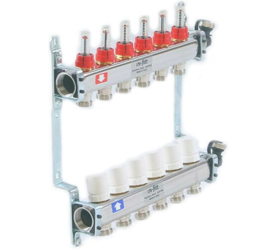 Коллекторная группа нерж.1"х3/4 на 6 вых.с расход.терморег.вентилями