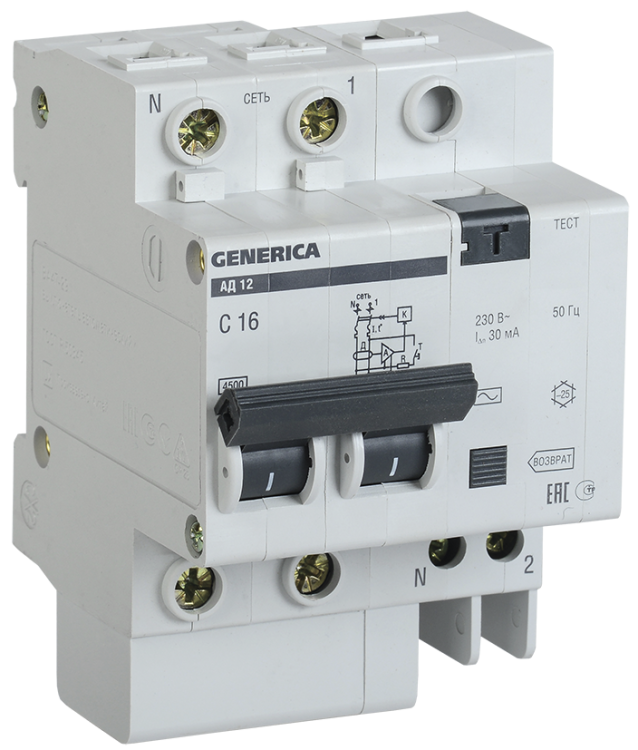 Диф. автомат АД12 2Р 40А 30мА GENERICA