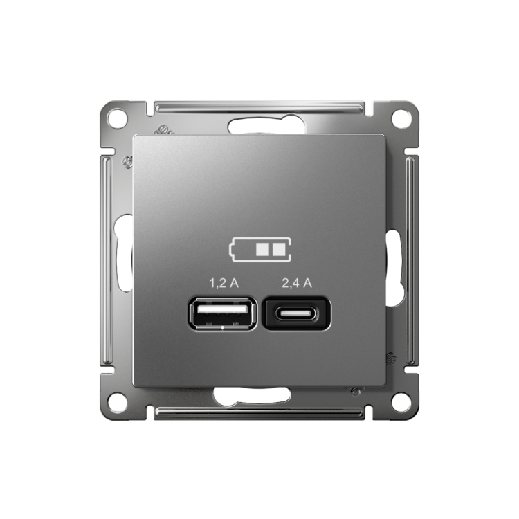 Розетка USB 2 порта A + тип-C 5В/2,4А 2х5В/1,2А сталь AtlasDesign