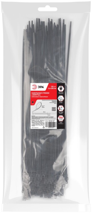 Кабельная стяжка ЭРА NO-225-178 (хомут) нейлоновая 3.6 х 200 мм чёрная (100 шт/уп)