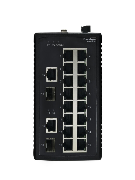 Неуправляемый промышленный коммутатор Ethernet, 16x10/100BaseT, 2x100/1000BaseX SFP