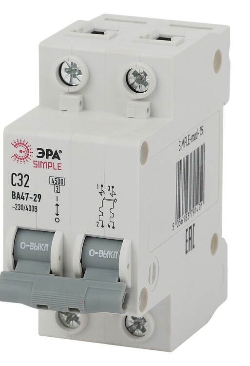 Автоматический выключатель ЭРА SIMPLE SIMPLE-mod-15 2P 32А (C) 4,5кА ВА 47-29