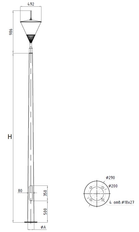 APEX LED 40W RW 830 RAL9005 POLE 5M (в комплекте ЗДФ)