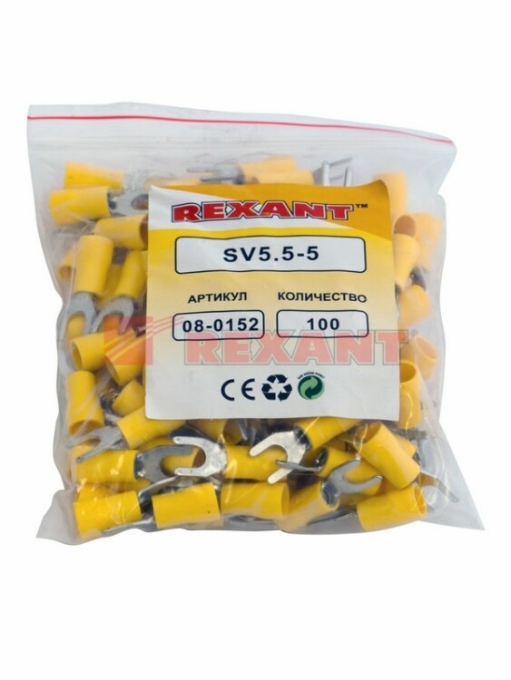 Наконечник вилочный изолированный 5.3 мм 4-6 мм² (НВи 6.0-5/НВи 5,5-5) желтый REXANT