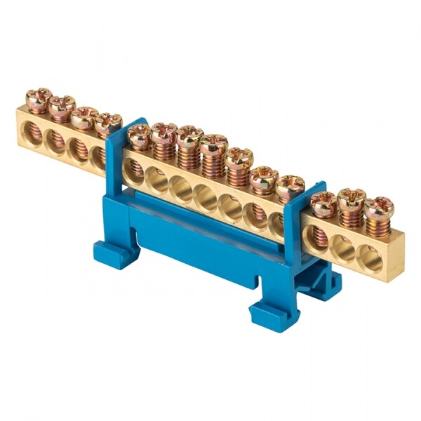Шина "0" N (6х9мм) 14 отверстий латунь синий изолятор тип "Стойка" на DIN-рейку розничный стикер EKF PROxima