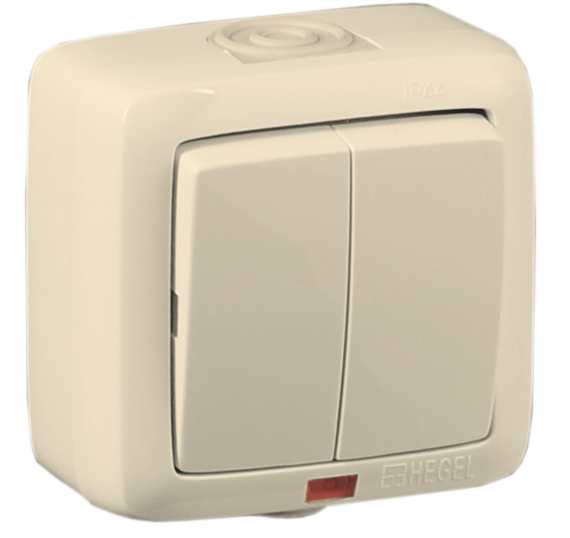 ВА10-252-01 Выключатель открытой установки, двухклавишный, с индикацией, брызгозащищенный, цвет слоновая кость