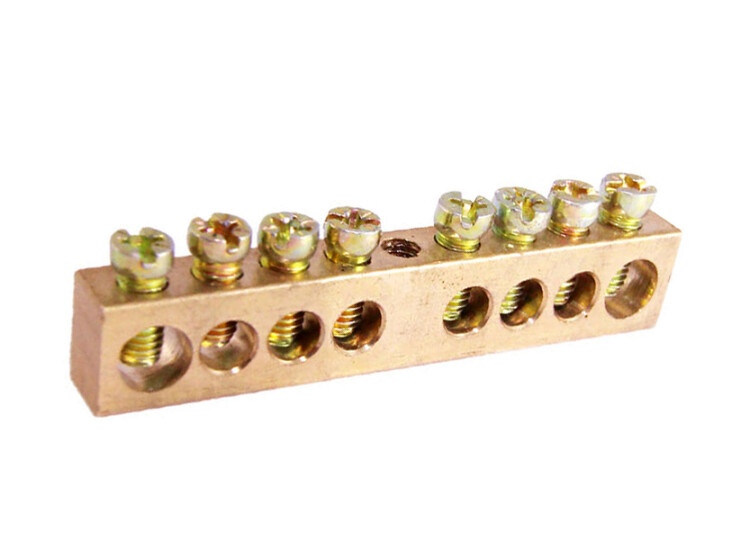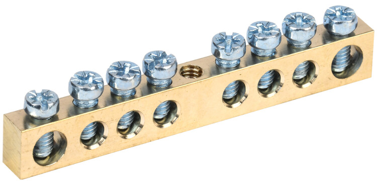 Шина N(PE) "ноль-земля" 6х9мм 8 отв. крепеж по центру