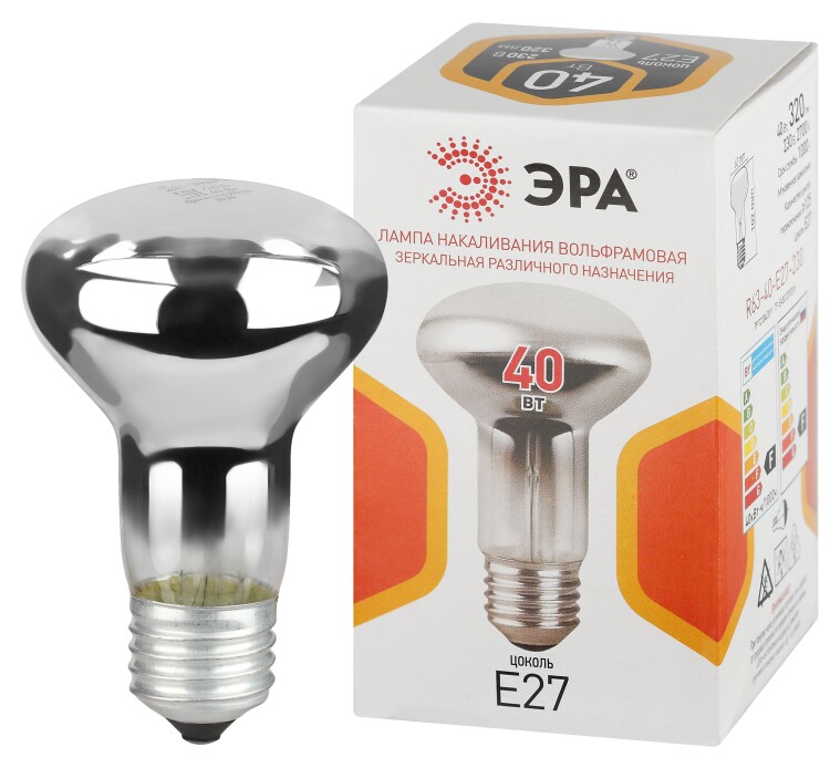 Лампочка ЭРА R63 40Вт E27 / Е27 230В накаливания рефлектор